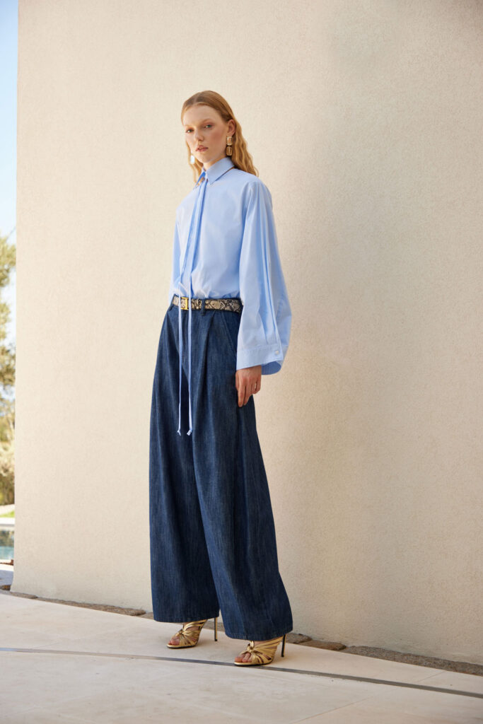 Heritage maschile e femminilità contemporanea dialogano in silhouette pulite ma inaspettate, arricchite da dettagli artigianali e materiali naturali alternati a superfici luminose.